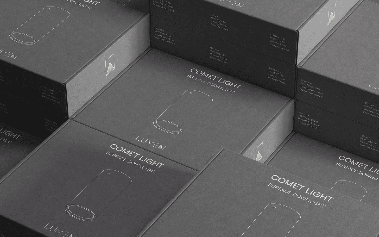 We refined the color palette. The previous grey tones were too soft. We introduced a deeper black grey to communicate strength and heritage, since the brand has been in the market for many years. The yellow was kept as a key highlight to represent light and visibility. The typography is clean, modern, and technical. The overall layout is minimal, structured, and easy to read. Each element supports clarity and precision. The result is a visual identity that feels current, confident, and aligned with the future of Lumen.